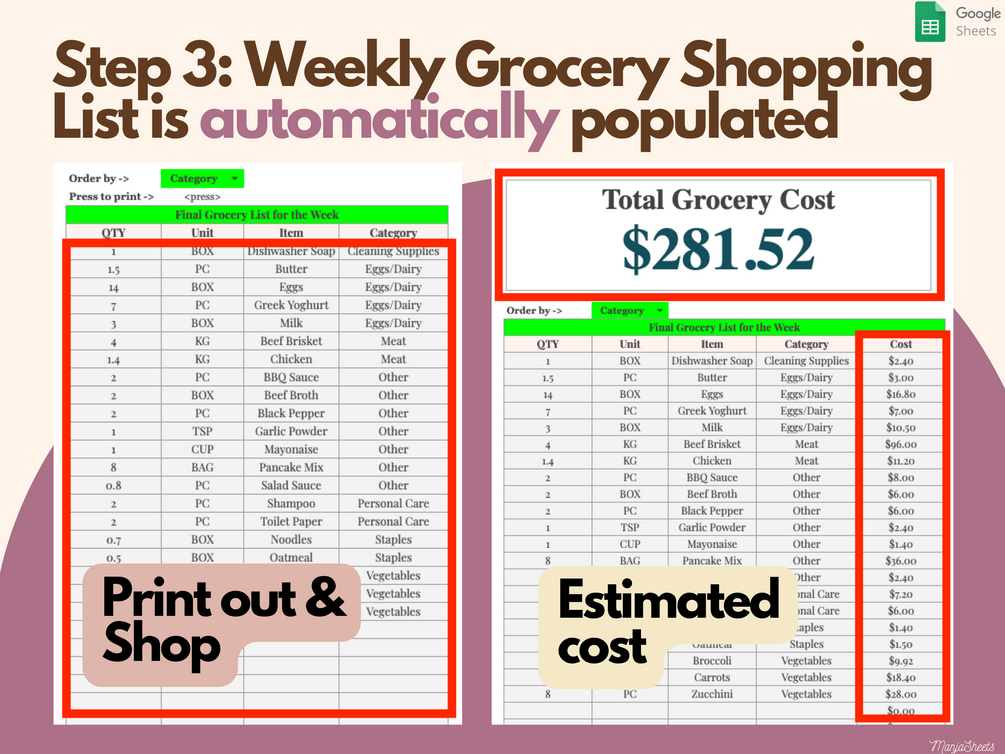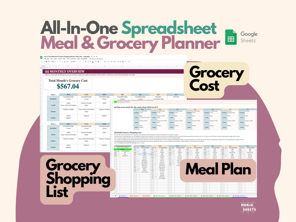 Weekly Meal Planner, Grocery List, Meal Plan Template, Shopping List, Weekly Meal Planning, Google Sheets