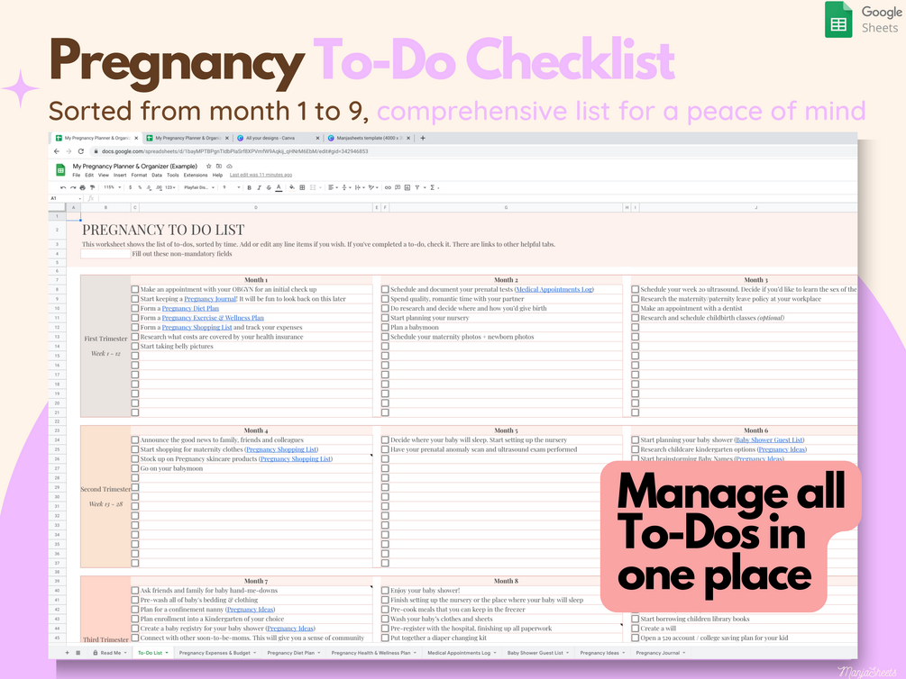 Digital Pregnancy Planner, Pregnancy Organizer, Pregnancy Spreadsheet, Google Spreadsheet