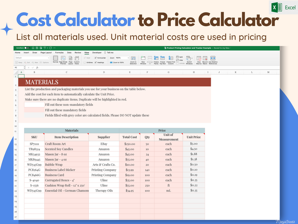 Product Pricing Calculator Microsoft Excel, Cost and Pricing Guide, Pricing Sheet, Small Business Pricing Tool