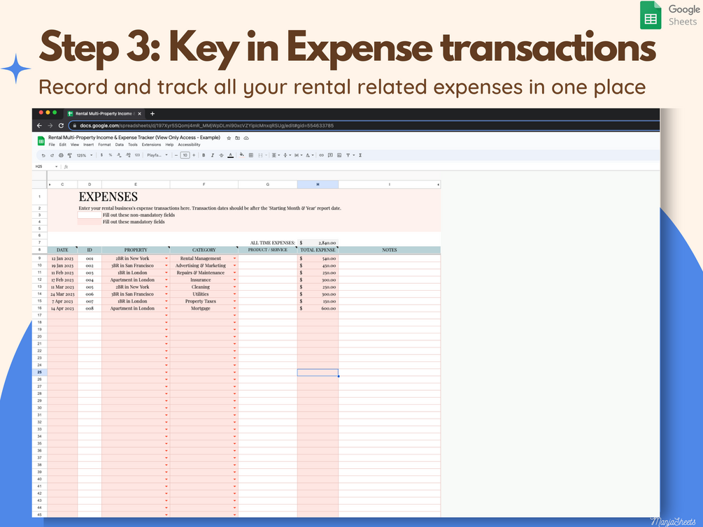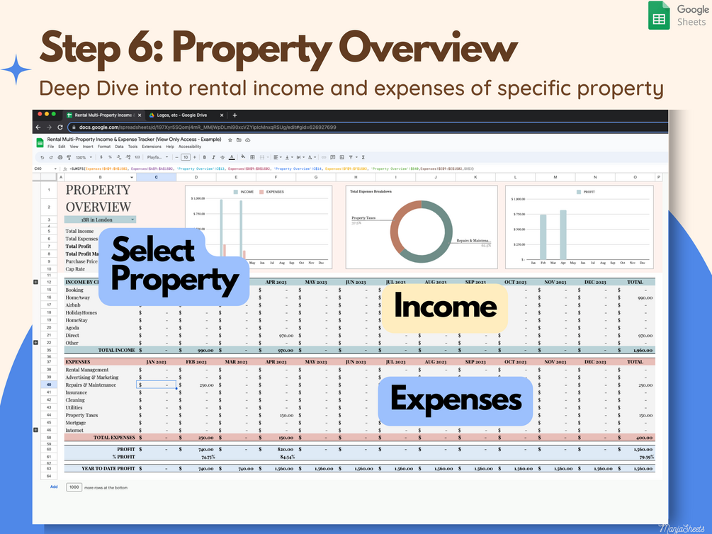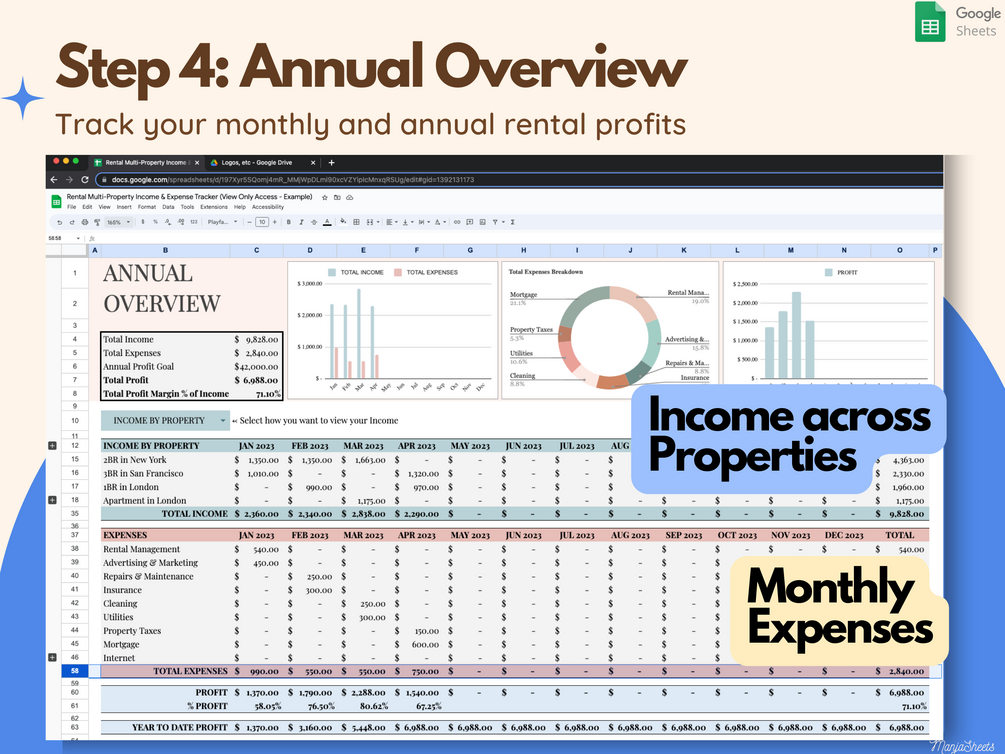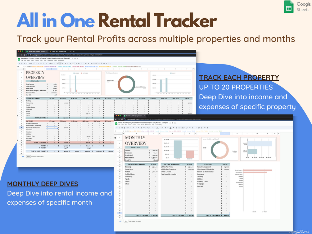 Rental Multi-Property Income & Expense Tracker Google Sheets helps you track your rental income & expenses for up to 20 properties. Perfect for rental landlords, airbnb owners who want an easy to use spreadsheet for rental bookkeeping.