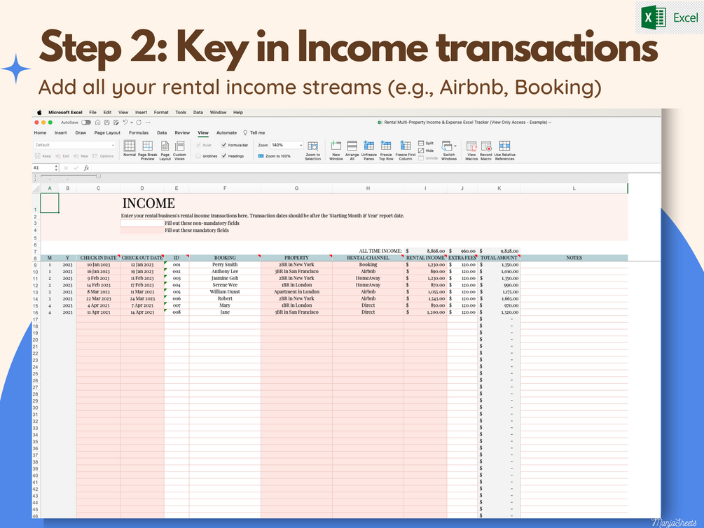 ☆ Income Tracker to record and track all your rental business income streams (up to 20 different properties and booking channels)