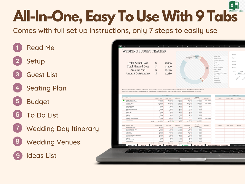 Wedding Digital Planner Microsoft Excel, Wedding Budget Spreadsheet, Wedding Checklist, Wedding Template