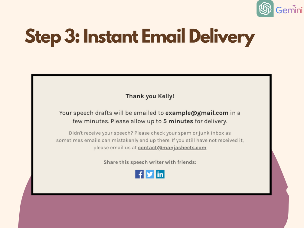 1) A perfect speech in minutes: Complete our form within minutes. Manjasheets AI fast-tracks your speech preparation, saving you precious time and effort.